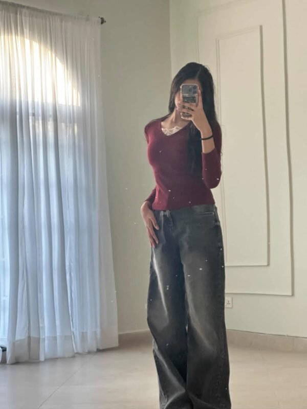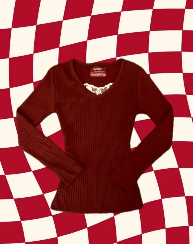 y2k wine red henley fairycore top